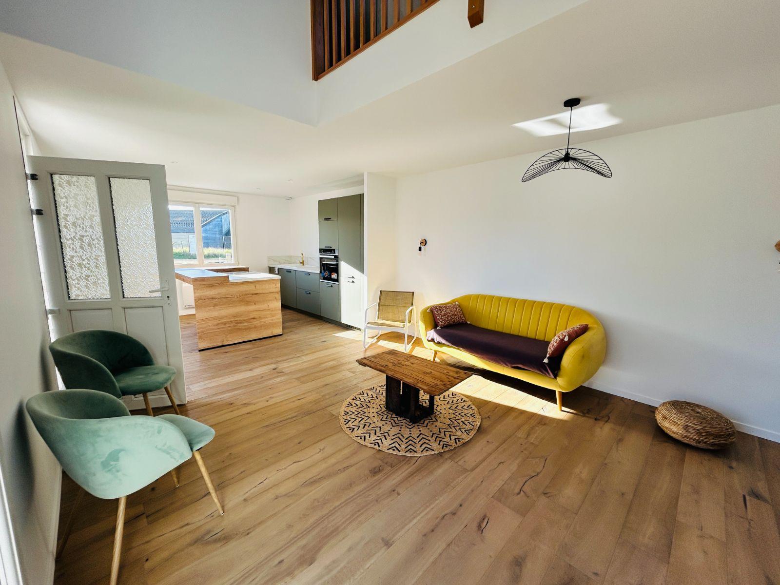 Découvrez cette charmante maison entièrement restaurée, idéalement située à seulement 1 km de la plage et des commerces. Parfaitement isolée malgré sa situation en bord de route, elle offre un confort de vie appréciable tout au long de l'année. Les atouts du bien Vie de plain-pied : séjour lumineux, cuisine ouverte, chambre et salle d'eau au rez-de-chaussée. Deux chambres mansardées à l'étage, idéales pour enfants, invités ou espace télétravail. Terrain de 187 m² avec jardin facile d'entretien, parfait pour ceux qui souhaitent profiter d'un extérieur sans contraintes. Les informations sur les risques auxquels ce bien est exposé sont disponibles sur le site Géorisques : www. georisques. gouv. fr Belle terrasse en bois, idéale pour les repas d'été et les moments de détente. Cette maison allie charme, rénovation soignée et proximité des commodités, tout en restant un pied-à-terre idéal pour profiter du littoral.